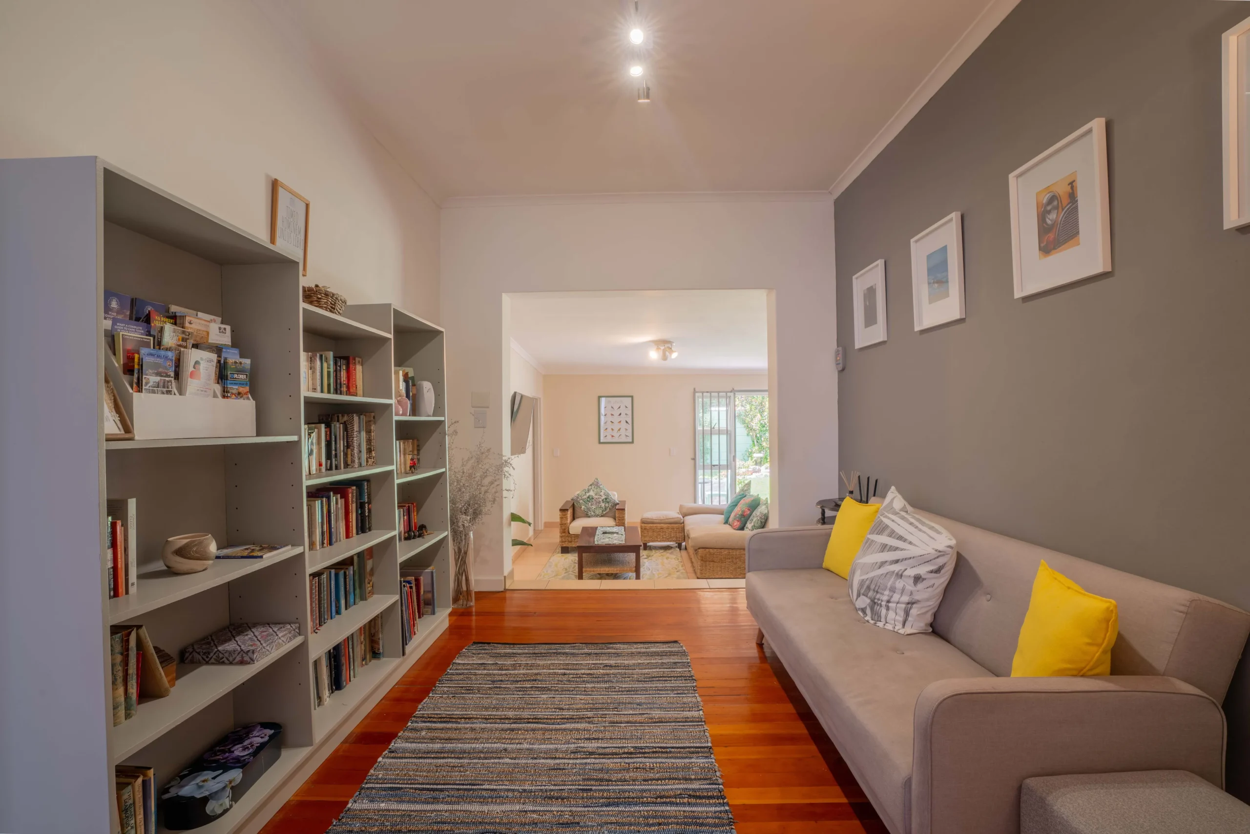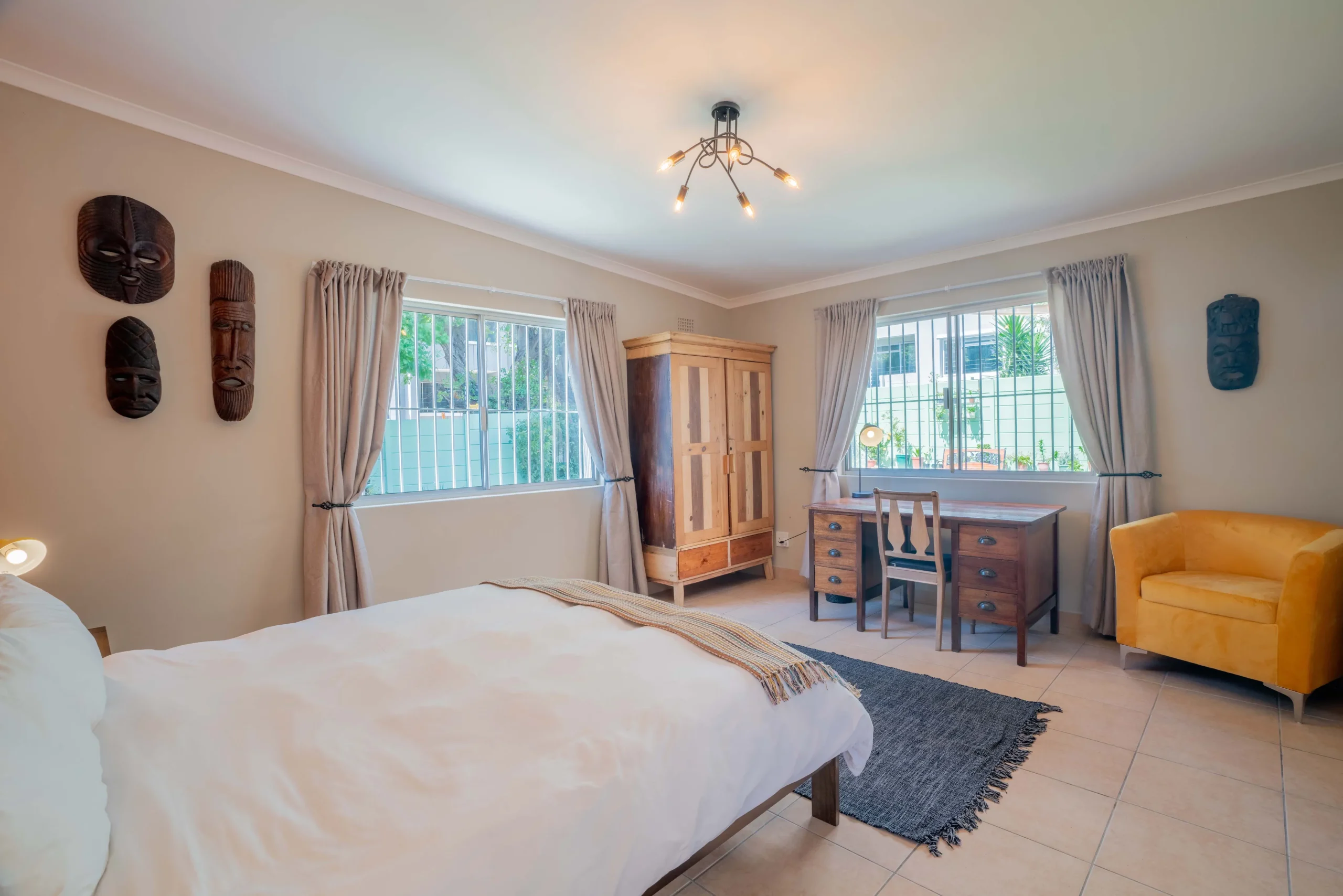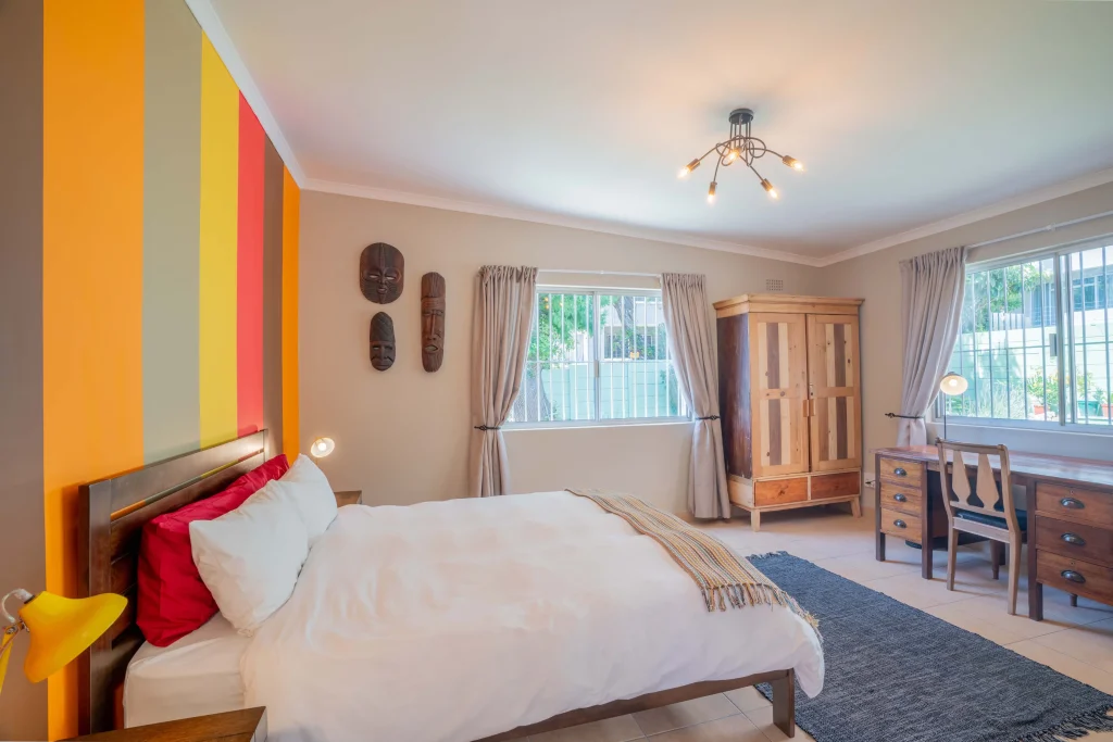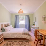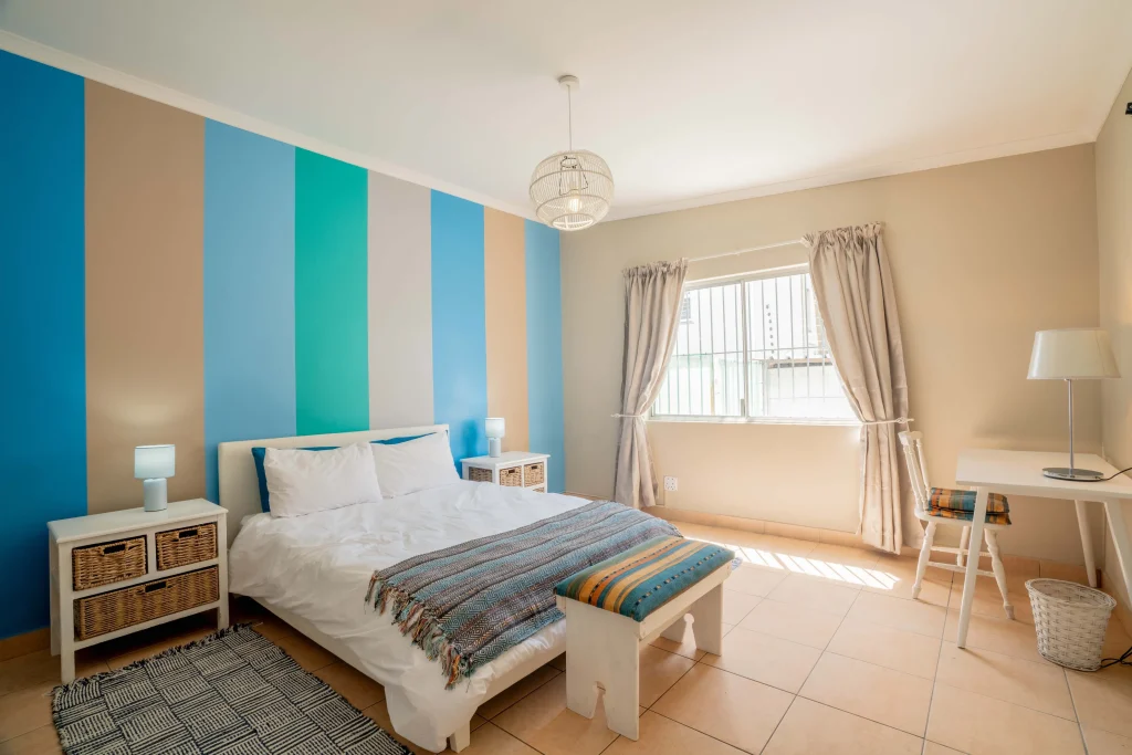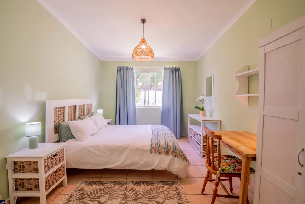 Cape Point Breeze is a beautifully lit, airy room designed for both comfort and productivity. Its large window fills the space with natural sunlight, creating a calm, refreshing atmosphere. Soft pastel tones help you unwind after a day of exploring Cape Town.